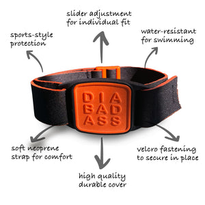 Our stylish armband with black neoprene strap and 100% Diabetic design on pewter coloured cover will transform the appearance of a medical device into a sports-style accessory. Reusable for many months - not just a single sensor.