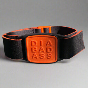 Choose our armband with black neoprene strap and DIABADASS design cover in orange and fully participate in daily activities with Dexband confidence!