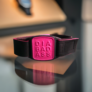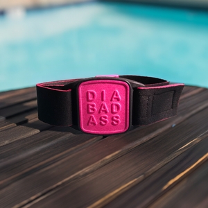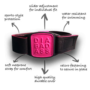 Choose our armband with black neoprene strap and DIABADASS design cover in magenta and fully participate in daily activities with Dexband confidence!